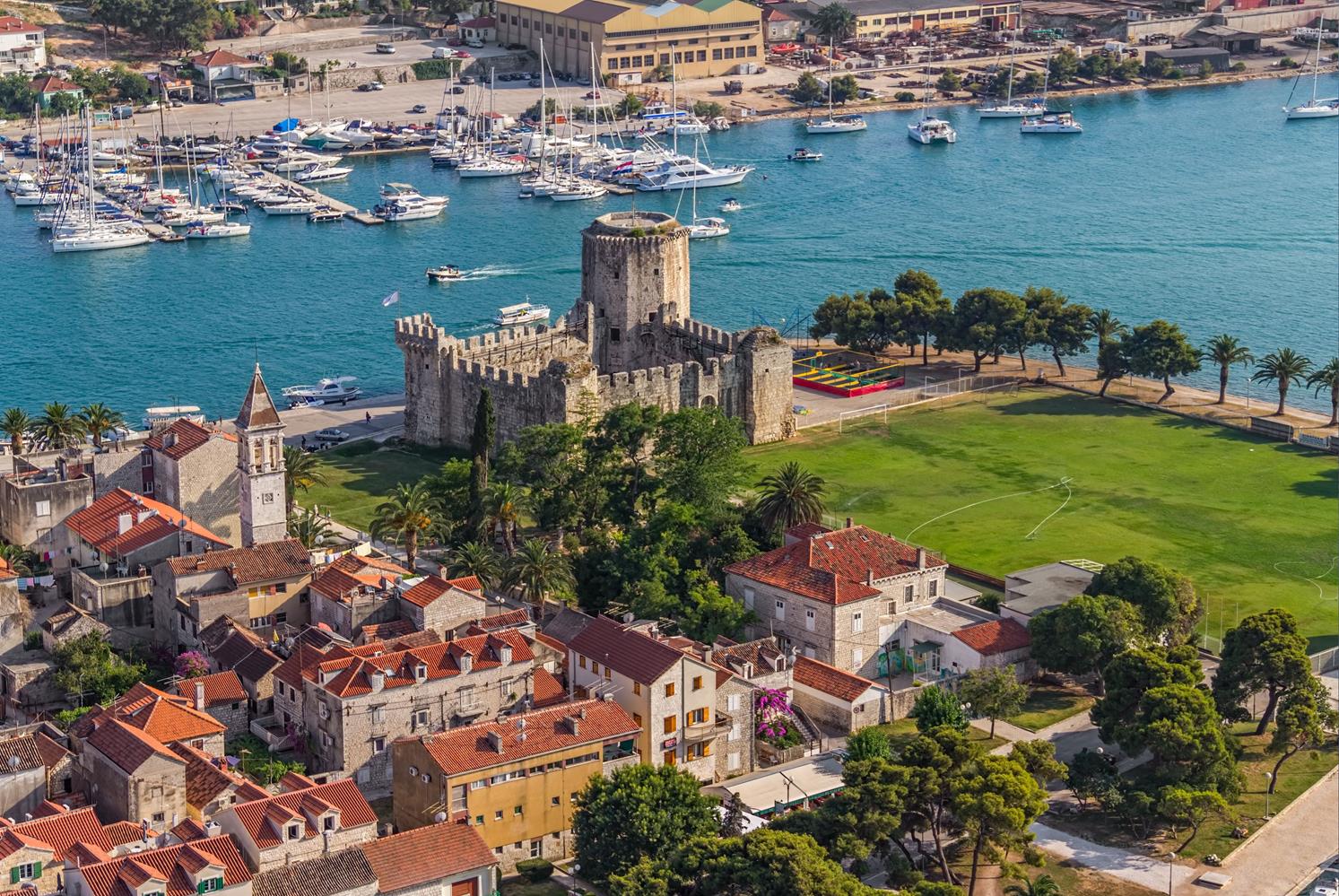 Trogir is one of the pearls of the Adriatic. This beautiful ancient town, under UNESCO protection, is situated on a small island. This island is on both sides – land, and sea – connected by bridges. So, besides being associated with the mainland, Trogir is also connected with the small island Čiovo. While entering the old town and walking through the narrow streets of Trogir, you will feel history all around you. All the buildings in Trogir’s old center are a mixture of different art styles, mainly Renaissance and Baroque ones. The bell tower of the Cathedral of St. Lawrence, built in the 13th century, offers a stunning view.