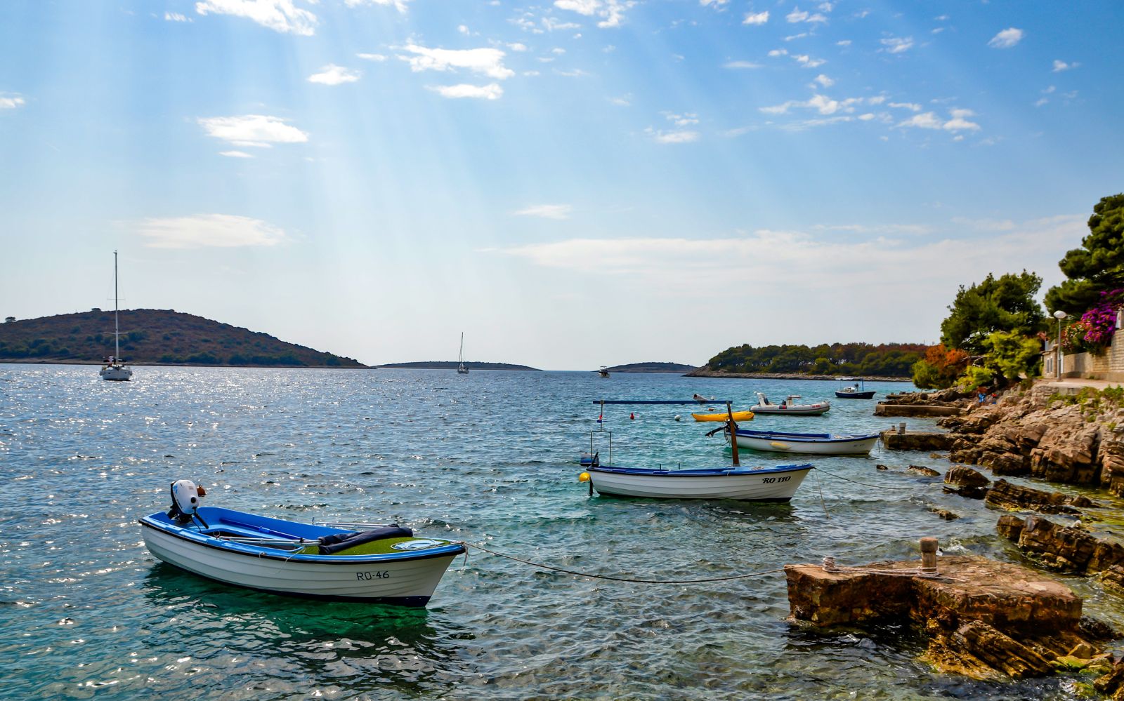 We advise you to take a little tour around emperor Diocletian’s old town before the start of your cruising tour, as this is something you should not miss while being in Split. After introducing the crew and the boat, you will sail out to Trogir, which will take about two h of navigation. You will spend the night on anchor, and dinner will be served on board. In the evening you can visit the town of Trogir.